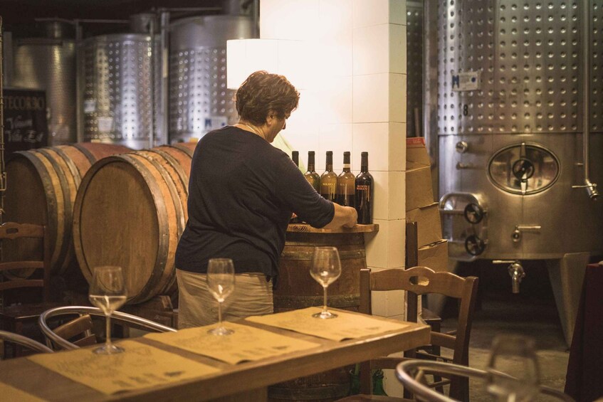 2) Führung durch die Cantina: Erfahre von einem echten Winzer in stimmungsvoller Atmosphäre, wie der Wein hergestellt wird. Du kannst auch die verschiedenen Weinernten verkosten, um die Auswirkungen der unterschiedlichen Holzfässer für die Reifung zu verstehen.